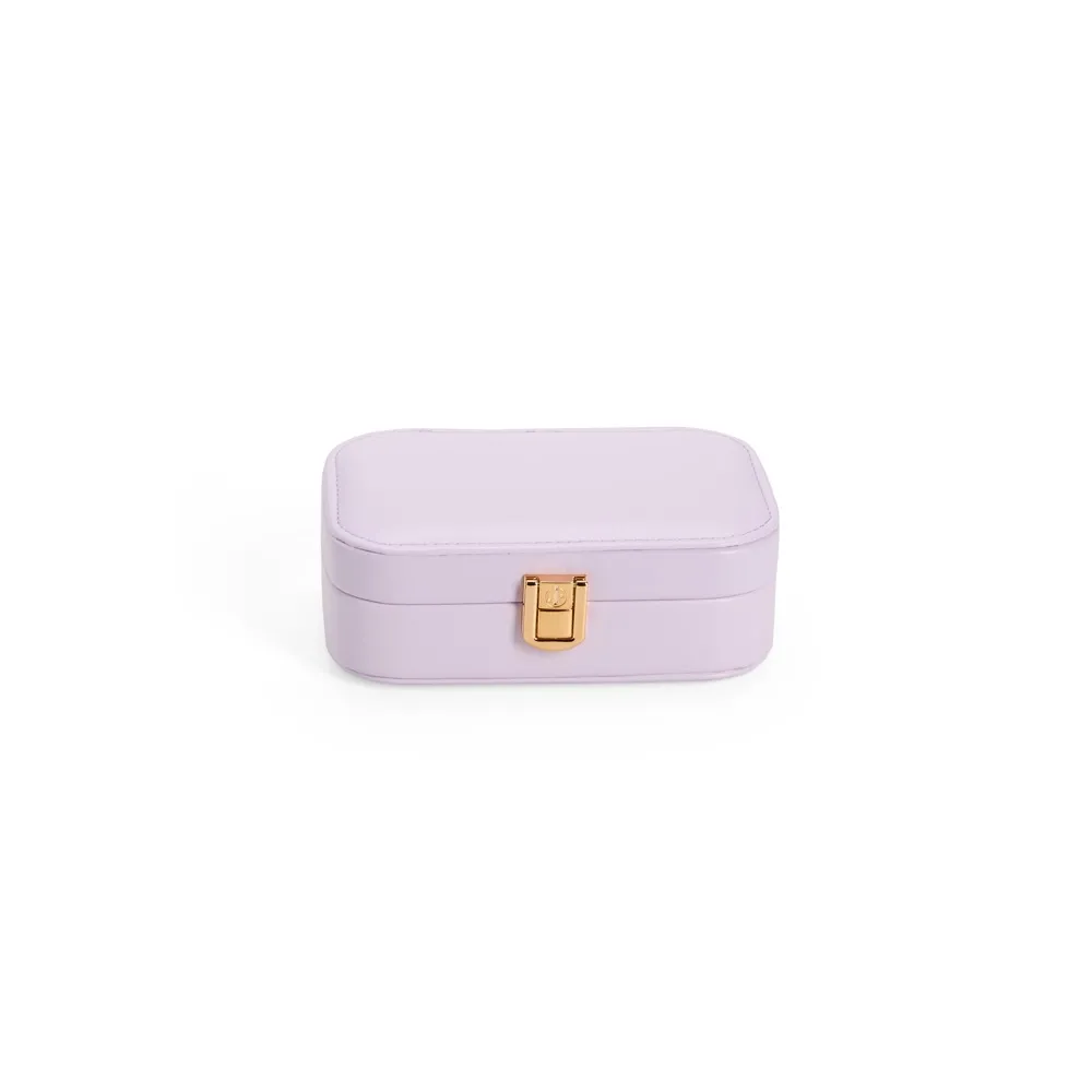 Porta-joias em poliuretano (PU) e revestimento interno em tecido aveludado. Conta com espelho interno, duas divisórias, repartição almofadada com ranhuras e trava de segurança.