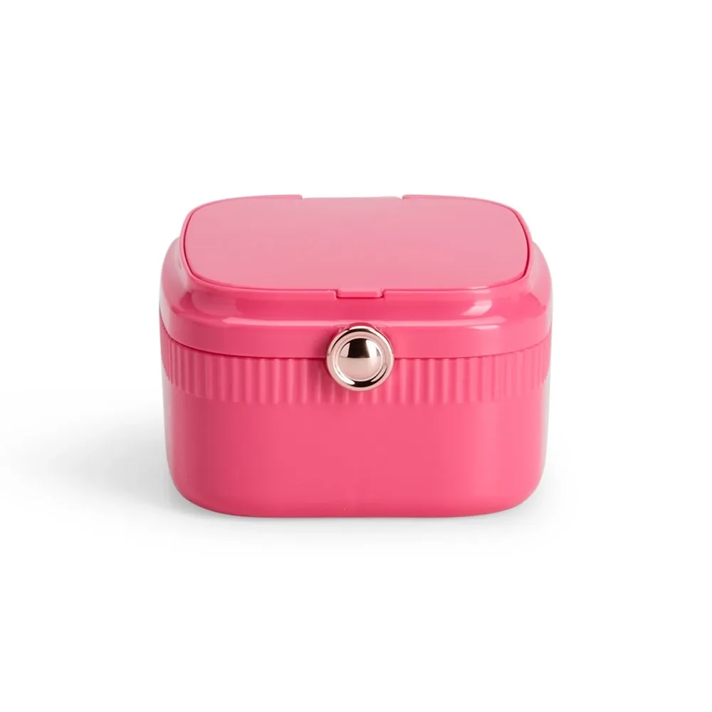 Suas joias merecem um lugar especial, e com este porta-joias, manter os acessórios organizados e protegidos nunca foi tão fácil e elegante. Produzido em plástico e de design compacto, sua abertura principal é cheia de glamour, destacada por um lindo botão na cor rose gold. Sua parte interna conta com três compartimentos: um removível e emborrachado, ideal para anéis, brincos e colares, e outro com divisória, perfeito para itens maiores como batons, pulseiras ou o que mais desejar. Além disso, possui um compartimento com espelho embutido, tornando o momento de se arrumar ainda mais especial na hora de escolher os acessórios.