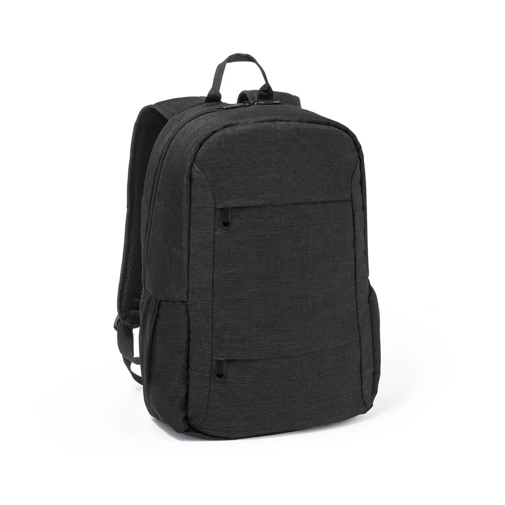 Mochila para notebook portátil em 300D poliéster reciclado (100% rPET) e forro em 210D poliéster reciclado (100% rPET). Compartimento principal almofadado, com divisória principal para portátil até 156" e tablet até 101". Mochila com 2 bolsos frontais com zíper e 2 bolsos laterais com detalhe em tela mesh. Parte posterior e alças almofadadas, ajustáveis para os ombros. A parte posterior e alças almofadadas incorporam uma alça para trolley em caso de necessidade. Design idealizado para assegurar uma excelente arrumação nas suas viagens de trabalho ou lazer. Capacidade até 18 L. 300 x 450 x 140 mm
