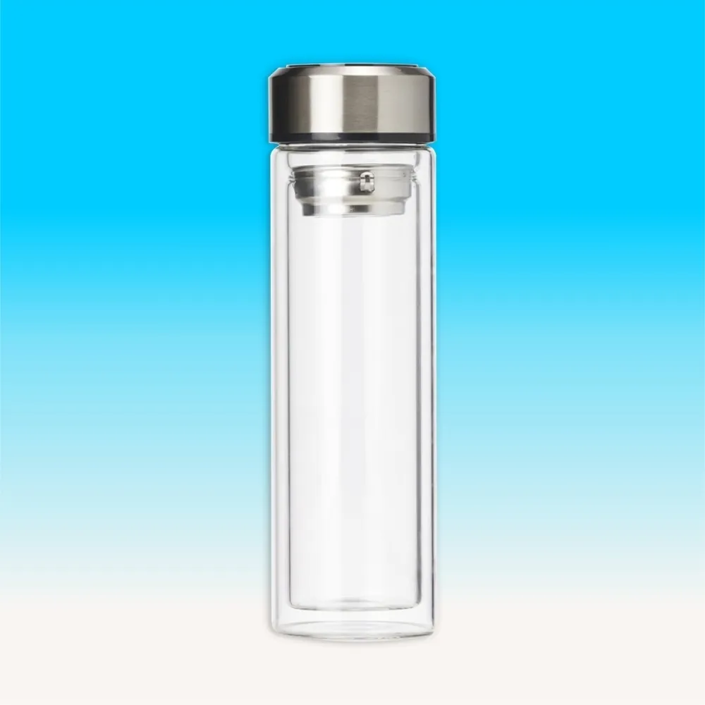 Garrafa Térmica em vidro borossilicato, com parede dupla (mantém temperatura interna por muito mais tempo) e capacidade de 450ml. Termômetro Led (funcionamento com toque) incorporado na tampa para medir temperatura do liquido. Infusor para chá em aço inoxidável. Tampa com vedação a prova de vazamento. Diâmetro maior e menor 6,7cm.