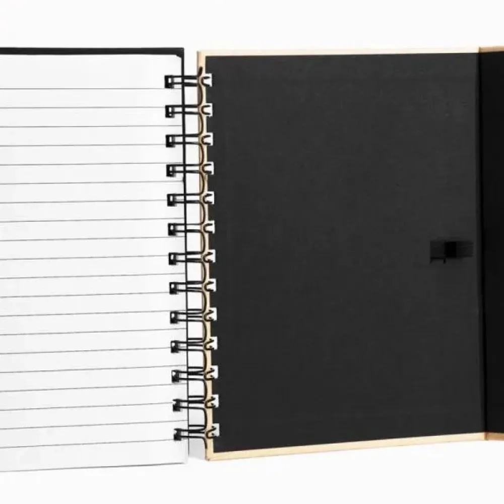 CADERNO ESPIRAL COM CAPA DURA PRETO / BEGE