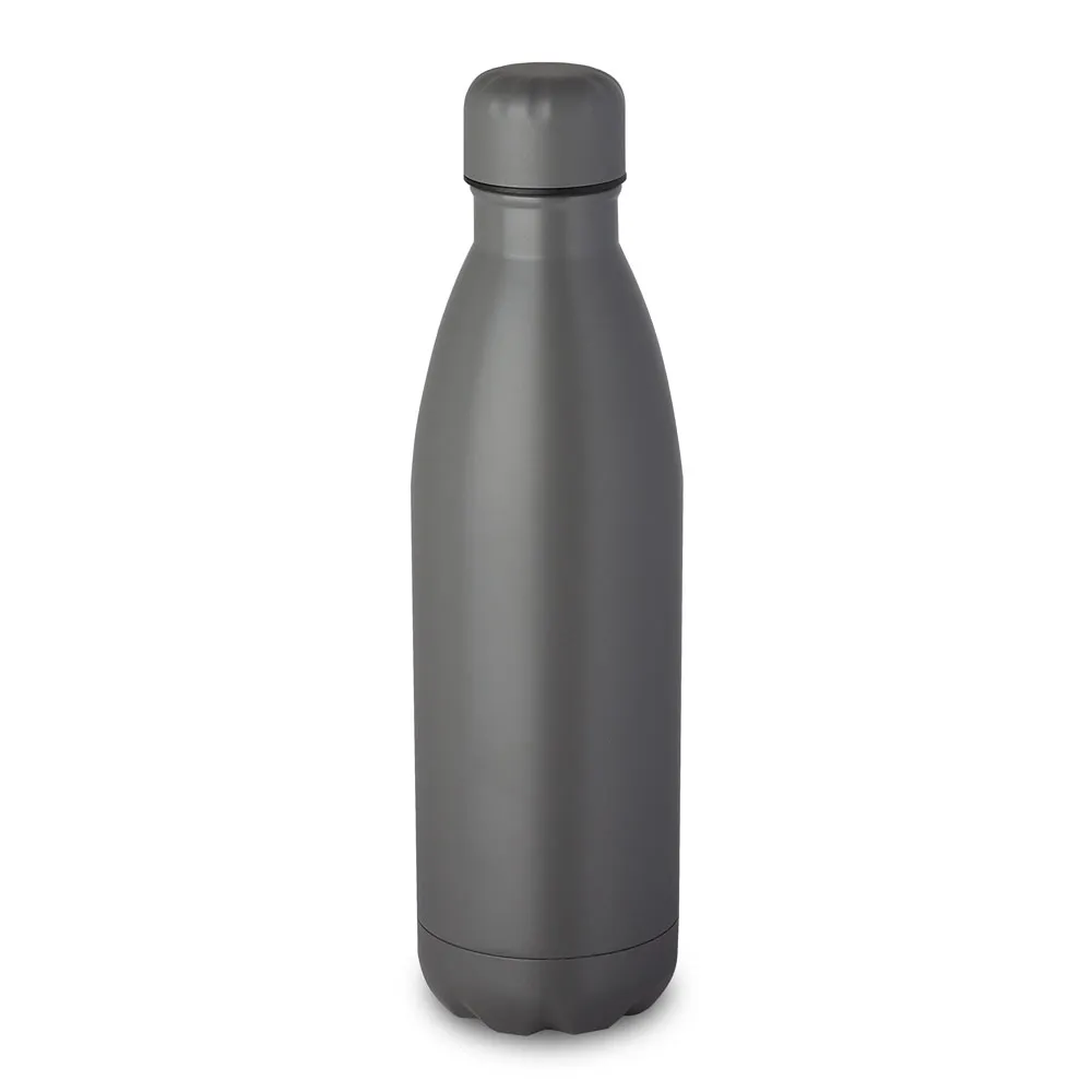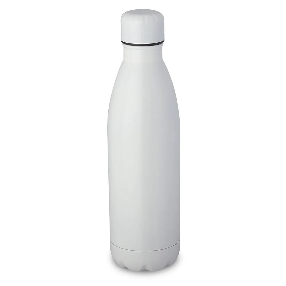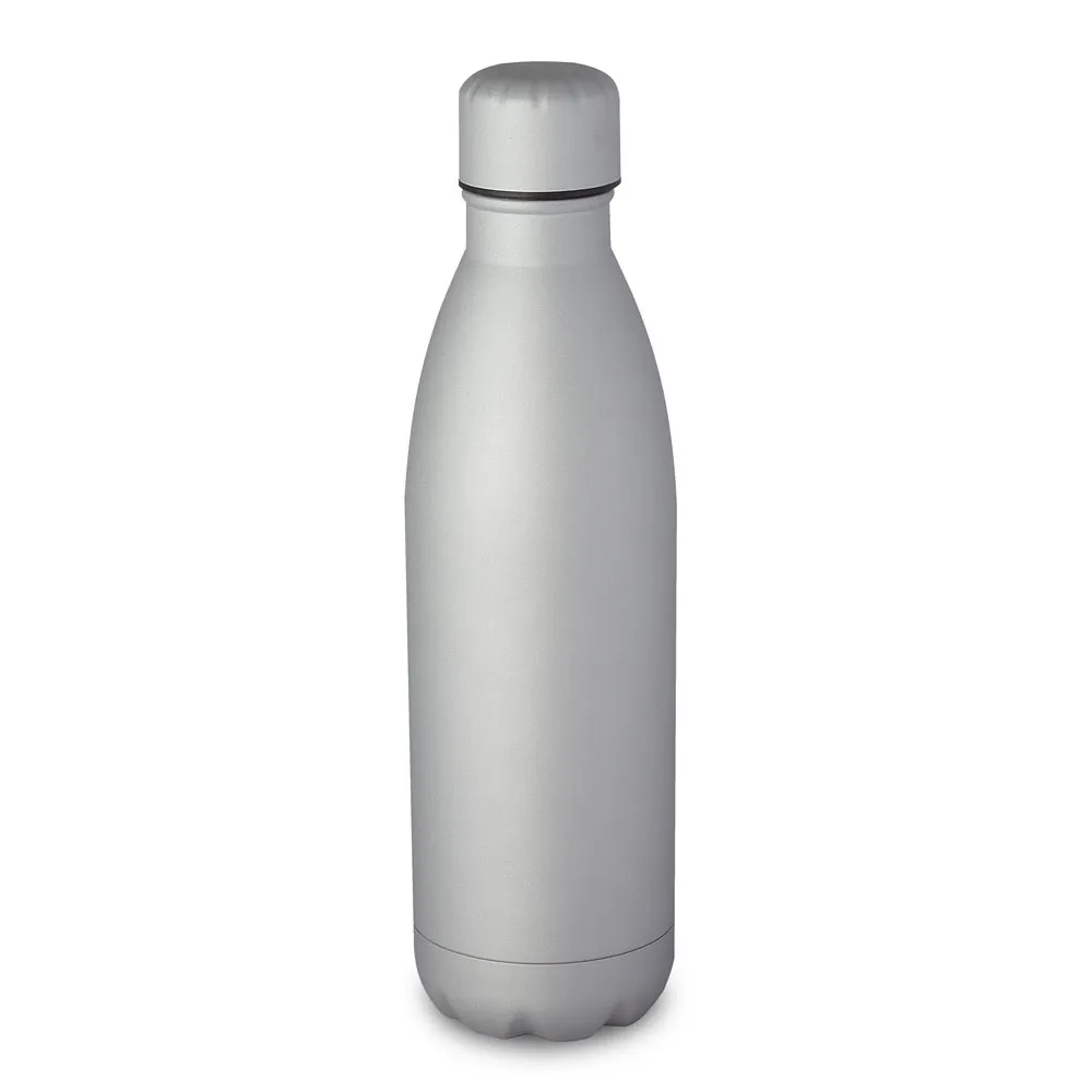 Garrafa fosca em aço inox com capacidade de até 750 ml. Tampa rosqueável e anel de silicone para vedação. Design com frisos na tampa. Dimensão do Produto: 26,5x7 Peso do Produto: 0,180kg Embalagem: Caixa Branca Dimensão da Caixa: 41x41x55,6cm Qtde por caixa: 50pçs Peso da Caixa: 11.5kgs Embalagem: Caixa de papelão branca
